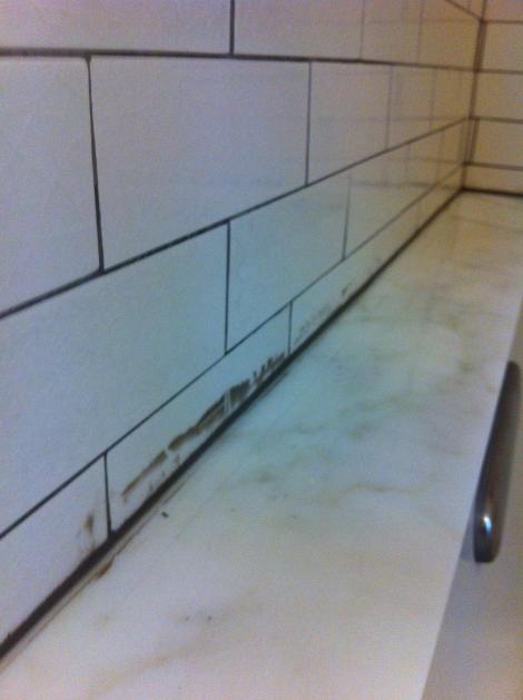 So, why “re”caulk? The first round of caulk actually pulled away from the tile/stone in certain spots, despite our best efforts using high quality caulk. So a re-do was necessary!