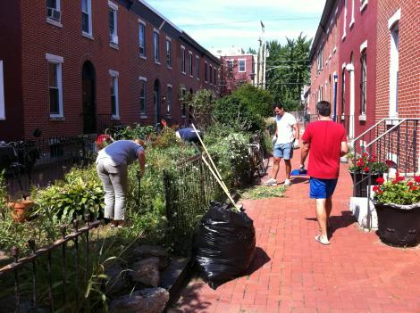 It was a beautiful morning for getting together with neighbors to clean up the block.