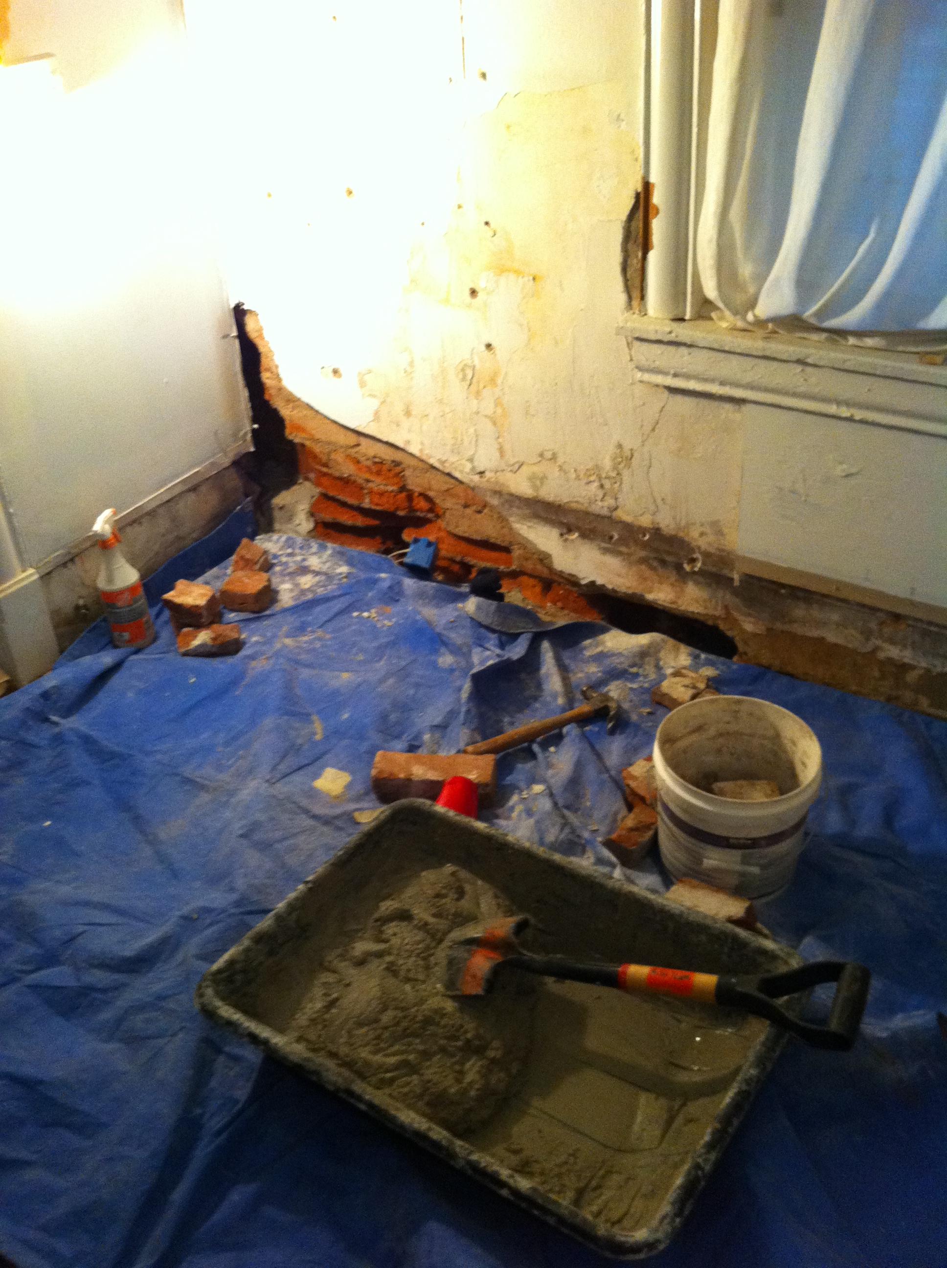 Masonry – Check! August 28, 2011 · by madisonsquare · Bookmark the permalink. · Rob wrapped up the masonry in the living room this afternoon. Before: After: Before- hole in corner: After- all patched in with new blocking for the baseboard: To wrap it up we’ll need to laminate with drywall and attach the baseboard. Share this: Click to email a link to a friend (Opens in new window) Email Click to share on Facebook (Opens in new window) Facebook Click to share on Pinterest (Opens in new window) Pinterest Like Loading... Related