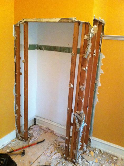 I’m taking out the closet in the orange bedroom. I’m mean why not, right? You should see what Rob’s doing. This is nothing. Before:
