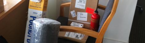 In the past few days we’ve gotten our (Lto R) pocket door frame, acoustic felt, & radiator – all too big to bike home with, so here’s the pile of […]