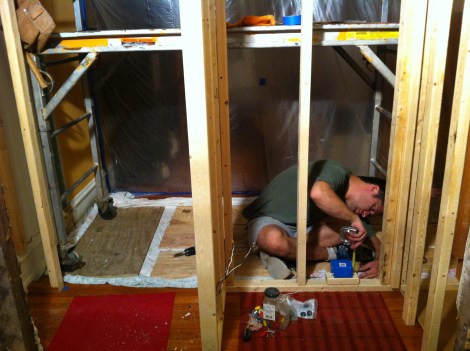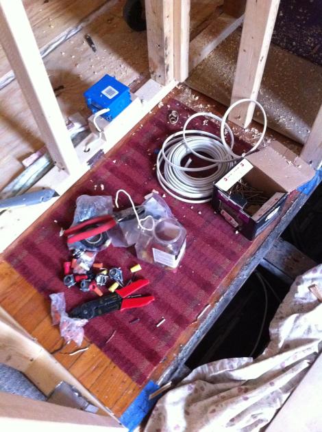 Wiring (or Rewiring…) the Closets September 4, 2011 · by madisonsquare · Bookmark the permalink. · Every time we get a great idea for a new project we end up redoing something from a previous project! Relocating bedroom outlets… Relocating the bedroom switches, wiring a new light in the upper closet, and rough-in for the intercom/ house stereo speaker… Share this: Click to email a link to a friend (Opens in new window) Email Click to share on Facebook (Opens in new window) Facebook Click to share on Pinterest (Opens in new window) Pinterest Like Loading... Related