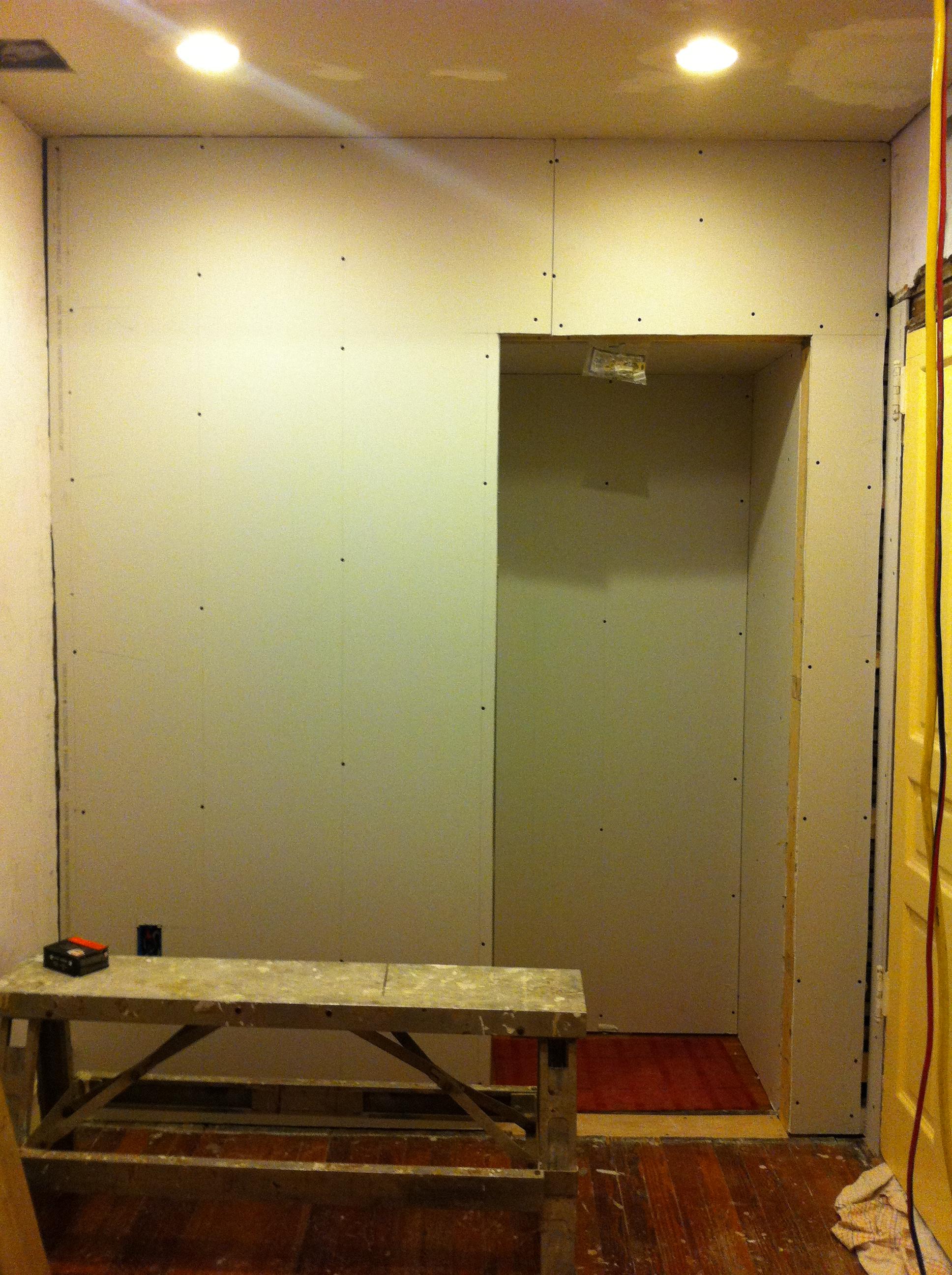 While Kelly went to her cousin’s baby shower with her Mom, her dad was kind enough to come over and help drywall… And he is fast so we got a lot done!