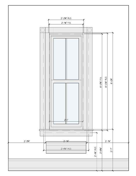 This guy clocks in at 2-7″ wide x 6′-0″ tall, which is slightly thinner than the previous window but more harmonious with the proportions of our other windows. We’ll be recreating the trim as it is now, with a cool 45-degree splay and a nice deep sill. Again we ordered from Marvin, who we used for all of our other windows (Kitchen, Bathroom, half bath, master bedroom) and we hope to see it delivered in ~4-6 weeks!