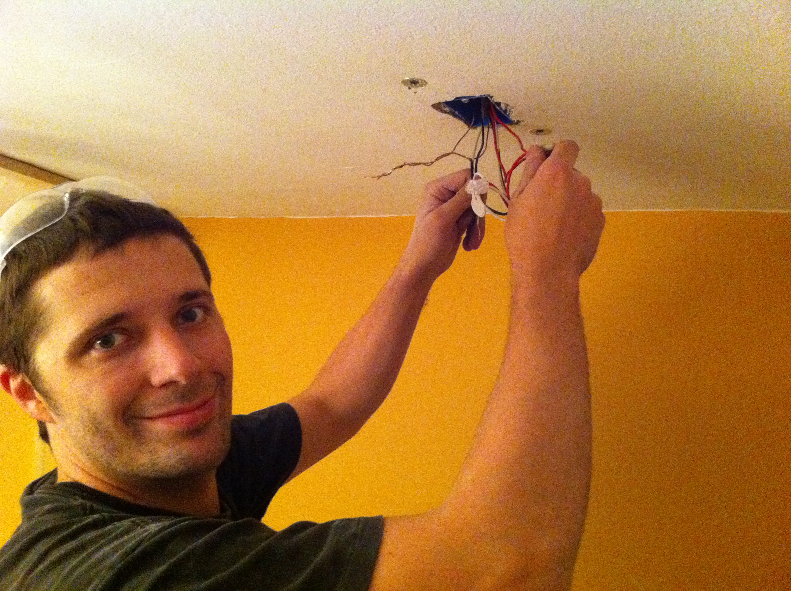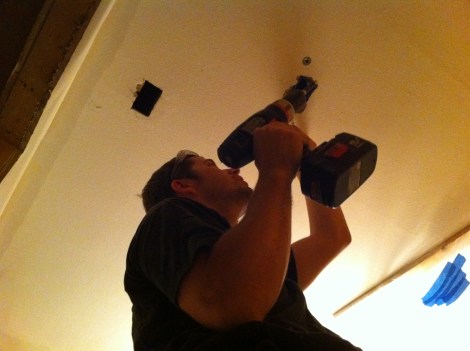The hardwired SD in the orange bedroom ceiling was a casualty of the closet project… You can see the black rectangular hole in the pic below- it was way too close to the wall and not aligned with anything anymore (which if you know us at all, you know we couldn’t stand).