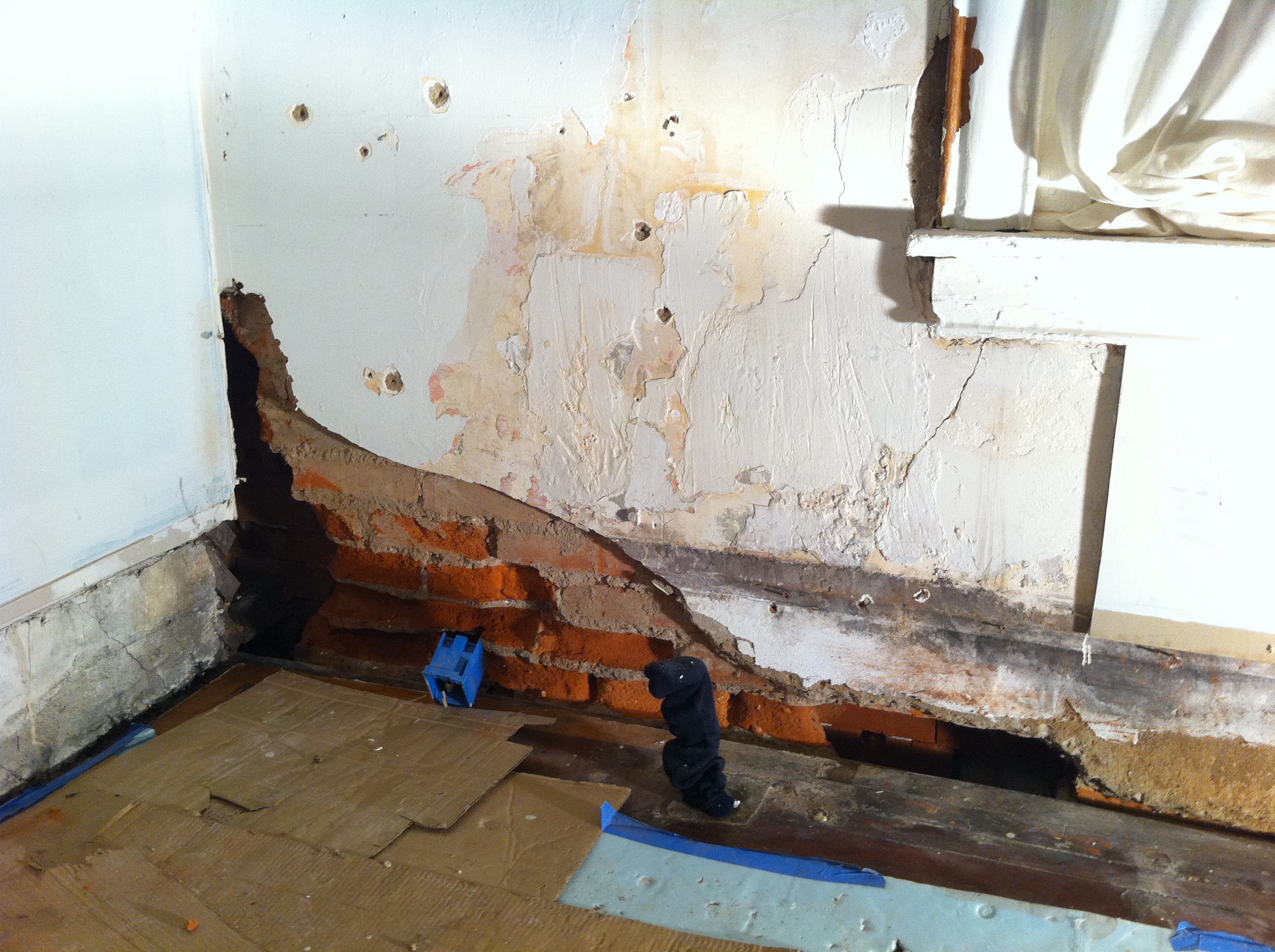 And after. We have a lot if stuff to do in here still but at least the exterior brick wall isn’t on the verge of possible collapse: