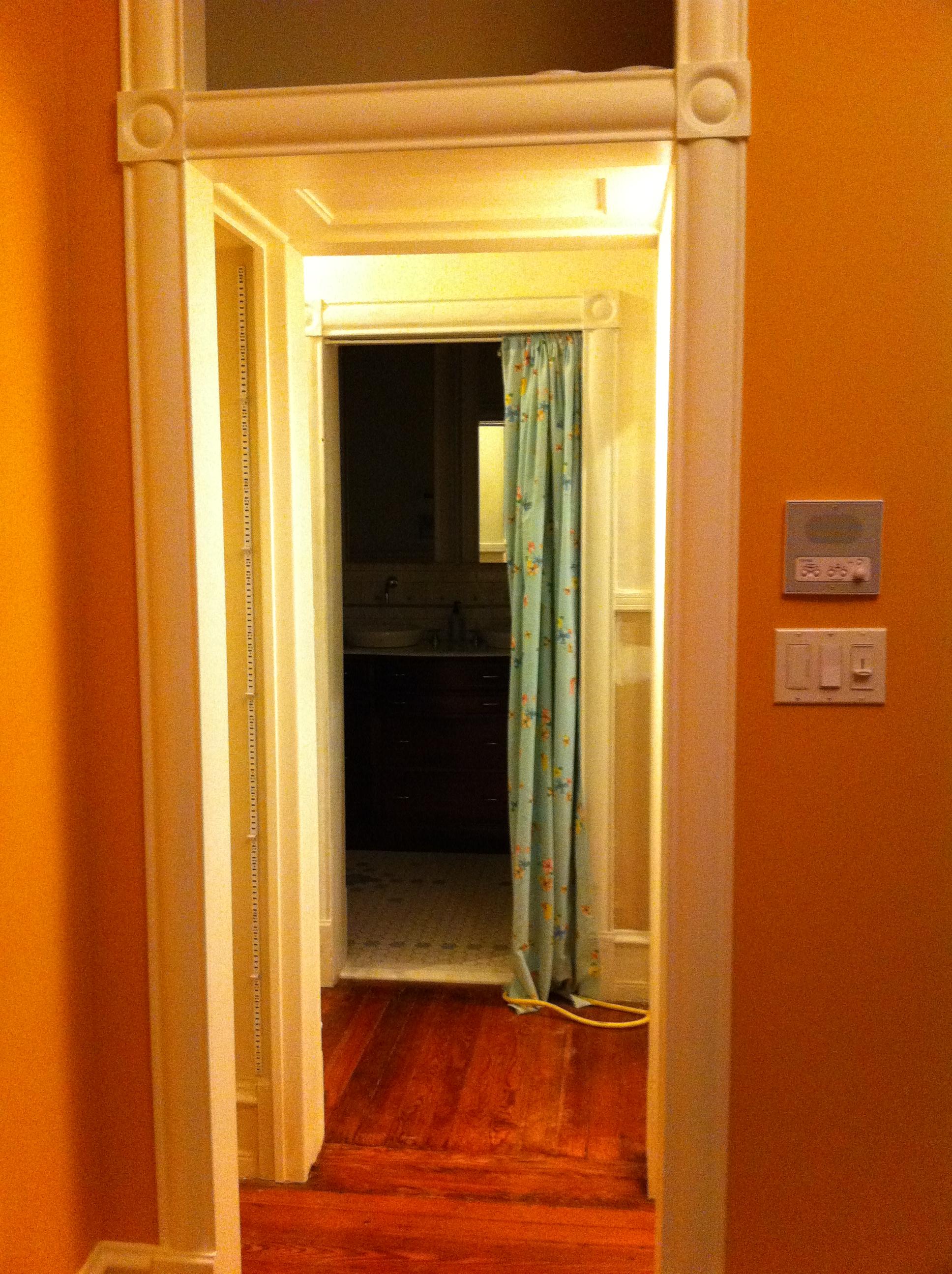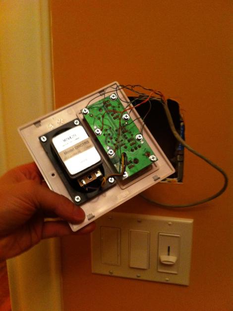 Speaker/intercom, light switches, fan control. We moved the programmable thermostat to our bedroom during this project “since the hall ceiling was open”. After: