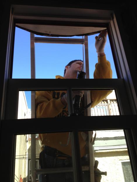 We took advantage of the nice early Saturday AM weather before our weekend trip to the Poconos to adjust the flashing above the window, paint a bit & caulk. What a difference working at 9am vs 9pm… Especially on a 36′ extension ladder: