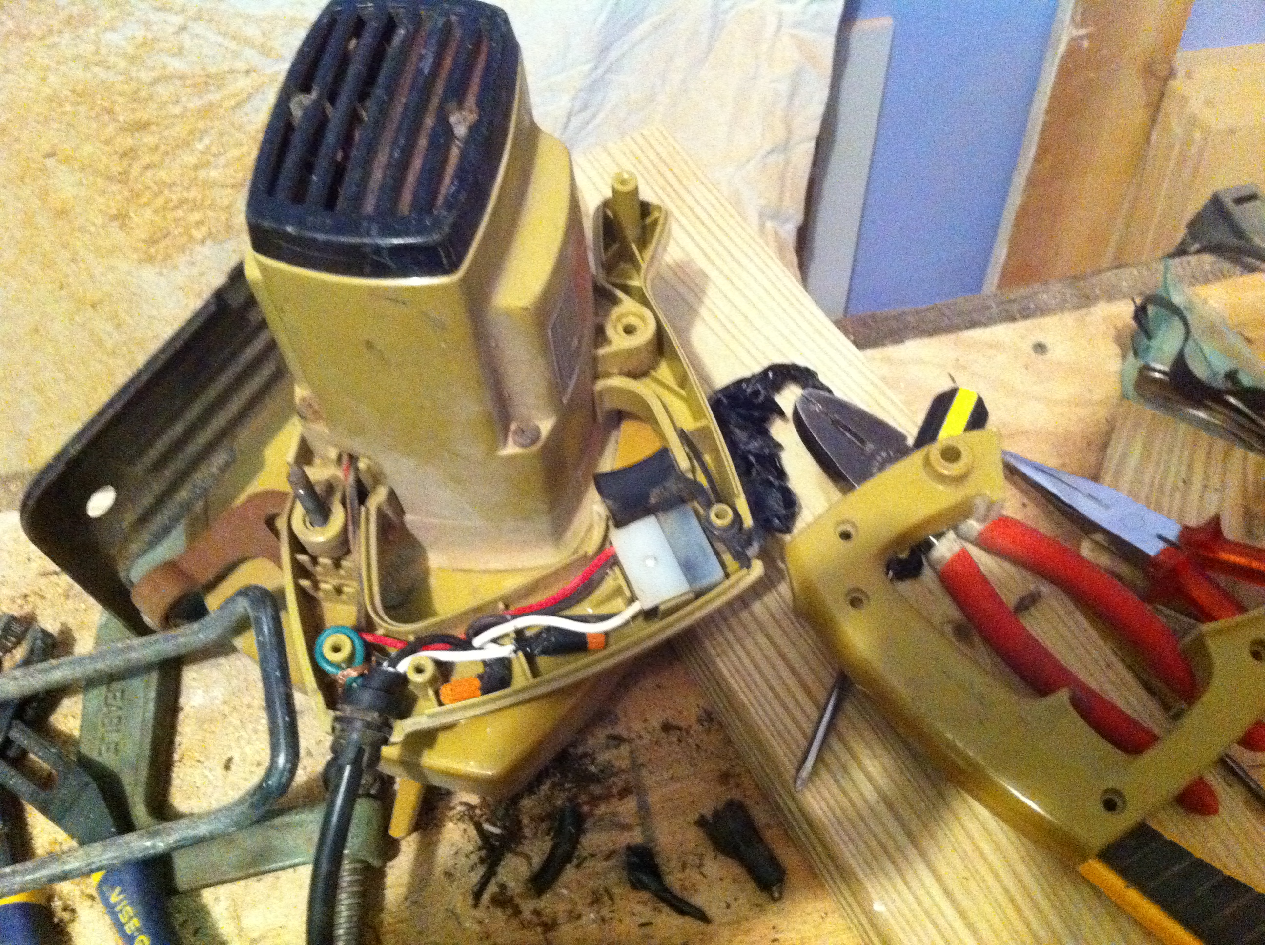 Meanwhile of course our most-needed tool for the project, a hand me down corded circular saw, decided mid-project that it quit. Luckily it was just the cord, Rob had a spare cord and rewired it.