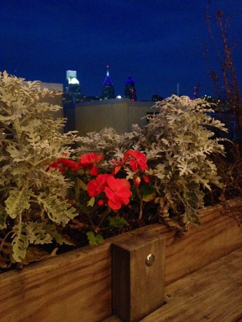 It was so nice out we grilled on the deck, check out the geranium in bloom!