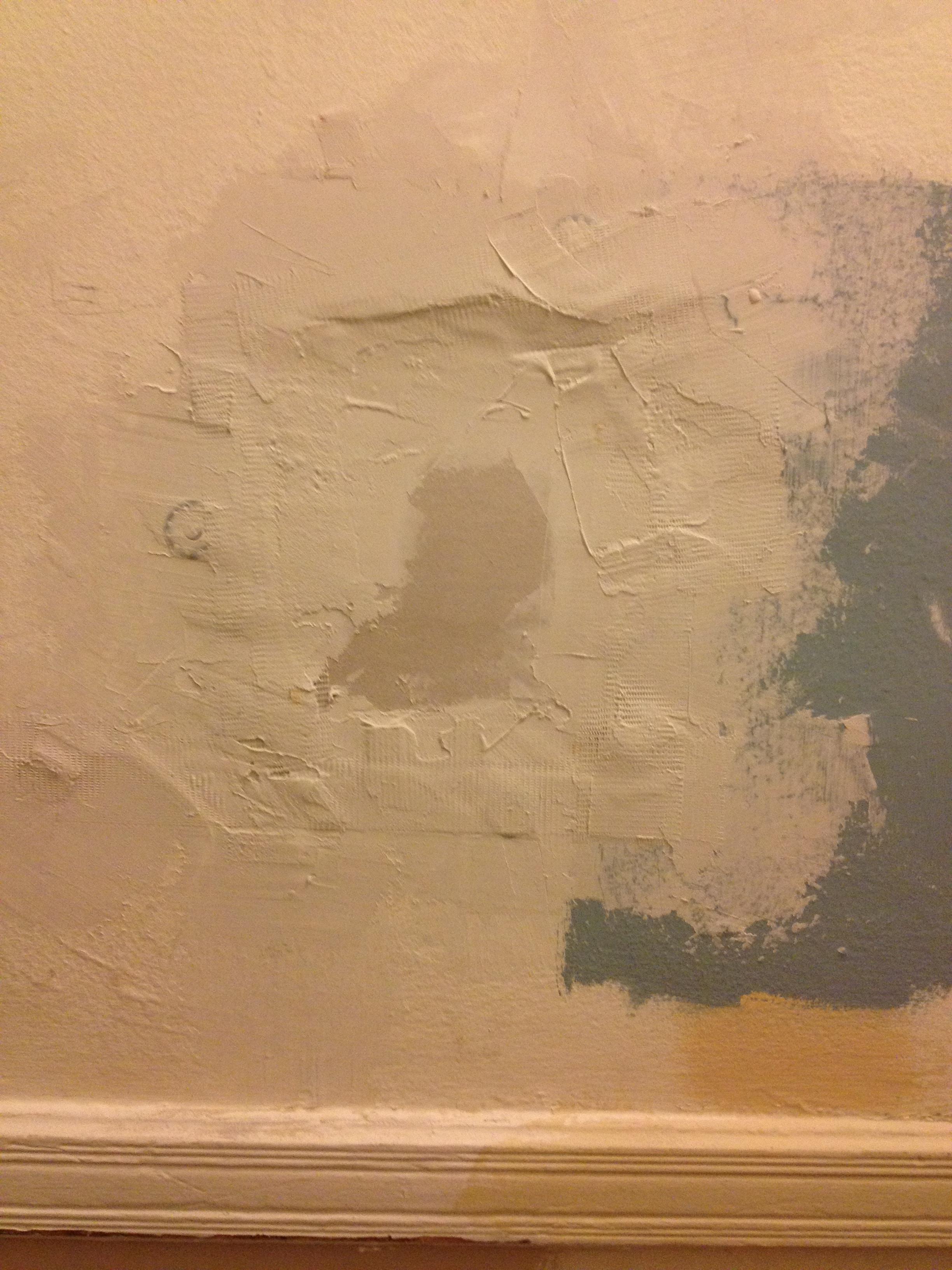 Here’s the NEW hole we made at another lump, in the bedroom. This one was filled in almost immediately though. Yes we sketch on our walls: