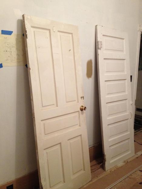 Sound familiar? Here’s the future bathroom door (L) and panel for the hvac soffit in the little bedroom (R):