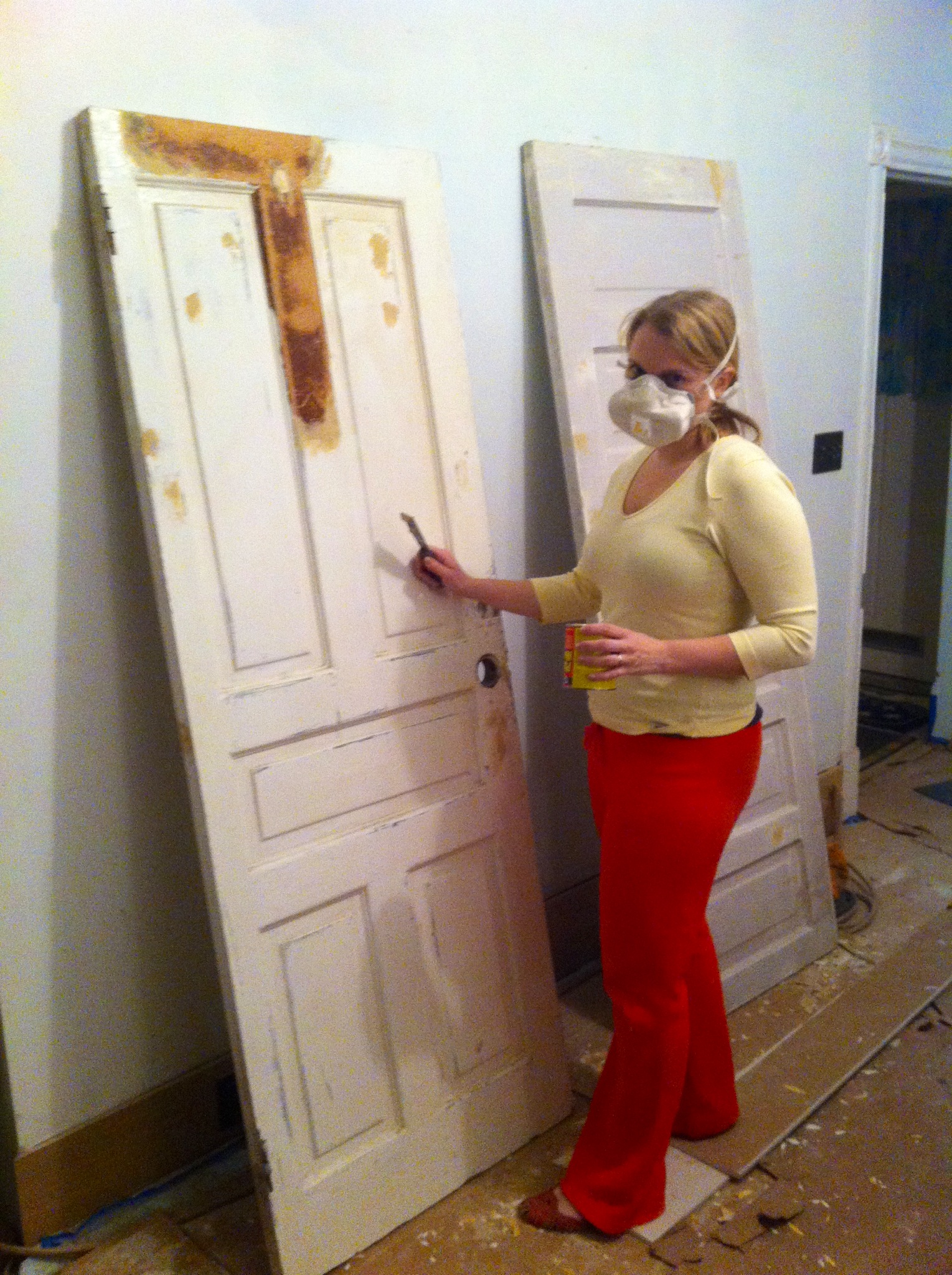 Besides sanding and filling with putty, there’s always the fun task of removing the old hardware: