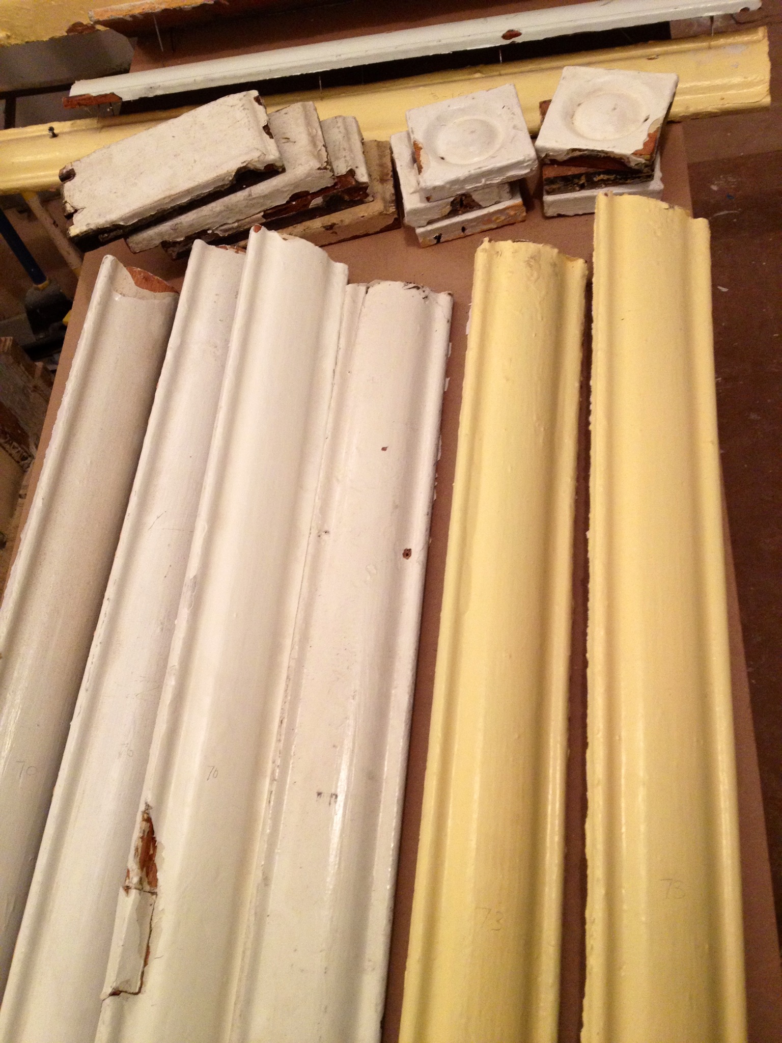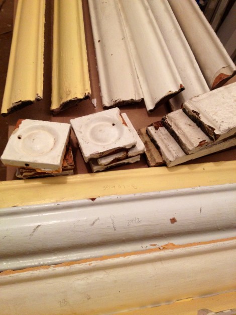 I also gathered together all the salvaged trim we’ll need to sand and fill to install in the bedroom around the doors and window.