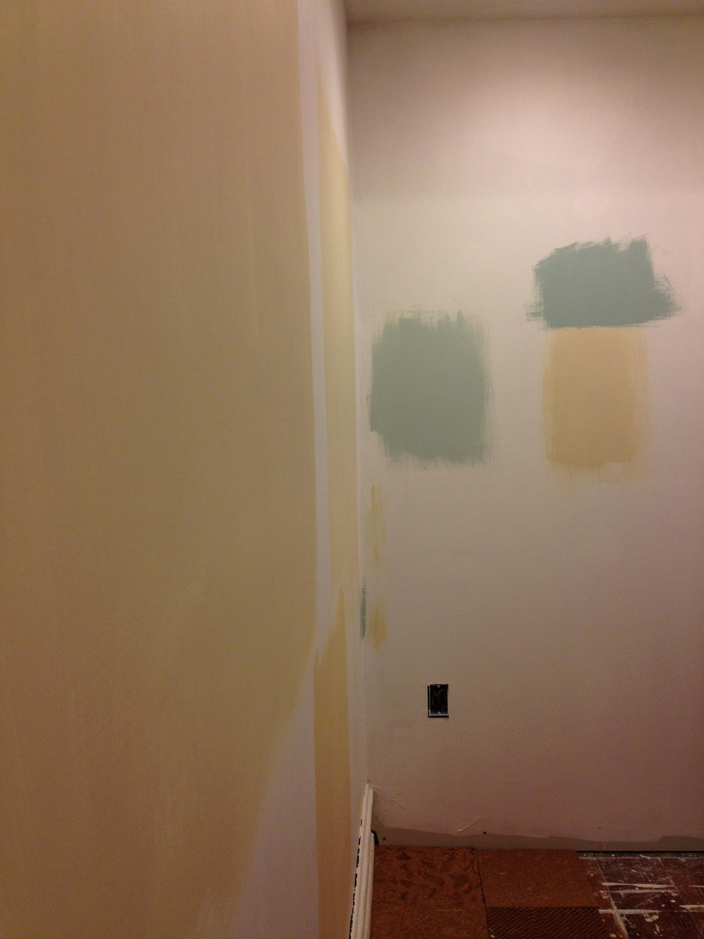 More paint samples- including some blues- our bedroom color & the bathroom ceiling- which we nixed pretty quickly: