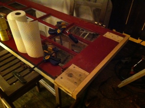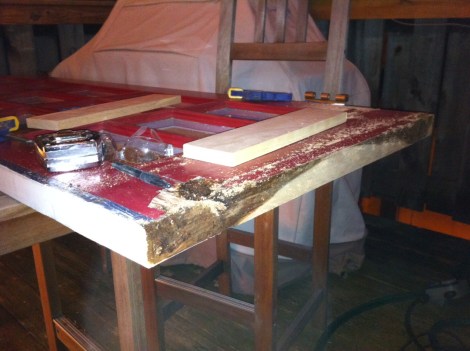 So this is after cutting off the worst bottom 2″ of the door. You can see there is still some rot on the ends and outer face of the door.