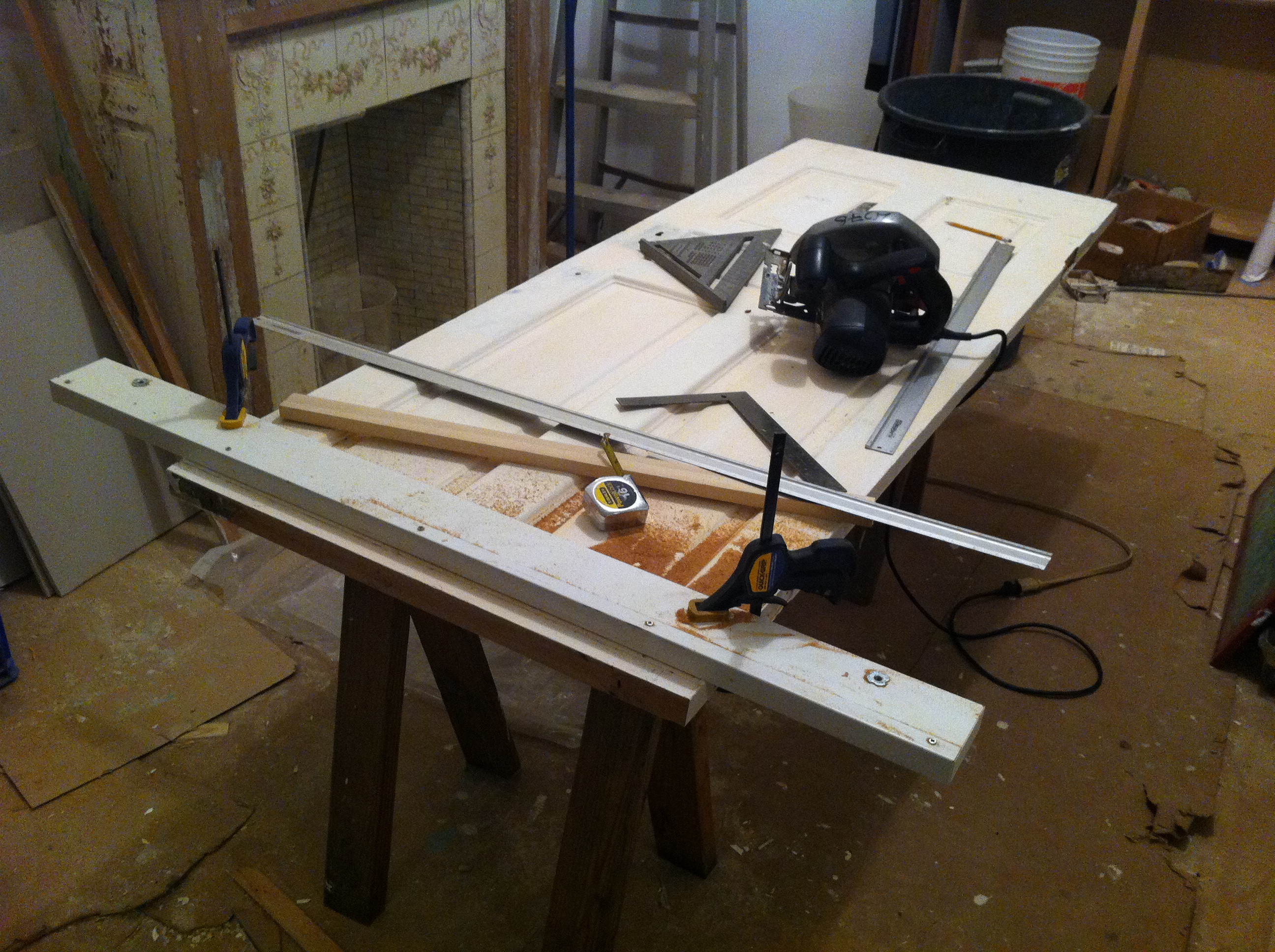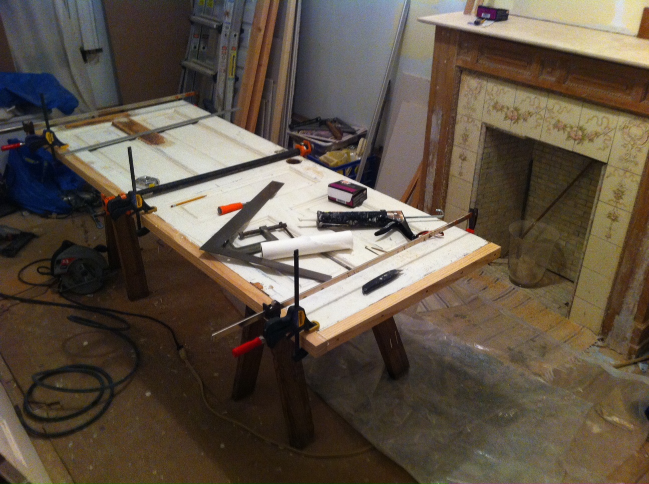 We are reusing a lot of the old doors but many of them have been really cut up over the years. So we need to make them square again and add back the material that was previously cut off.