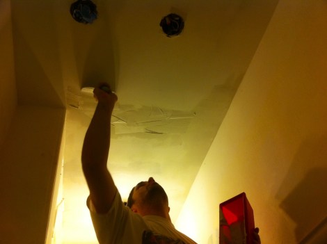 It looks like a monster but the future wall grill, light, and smoke detector go here…