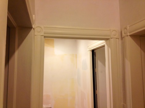 First (boring) things first. There’s now a coat of Pot of Cream on all trim in the hall and bedroom (wellll except the window):
