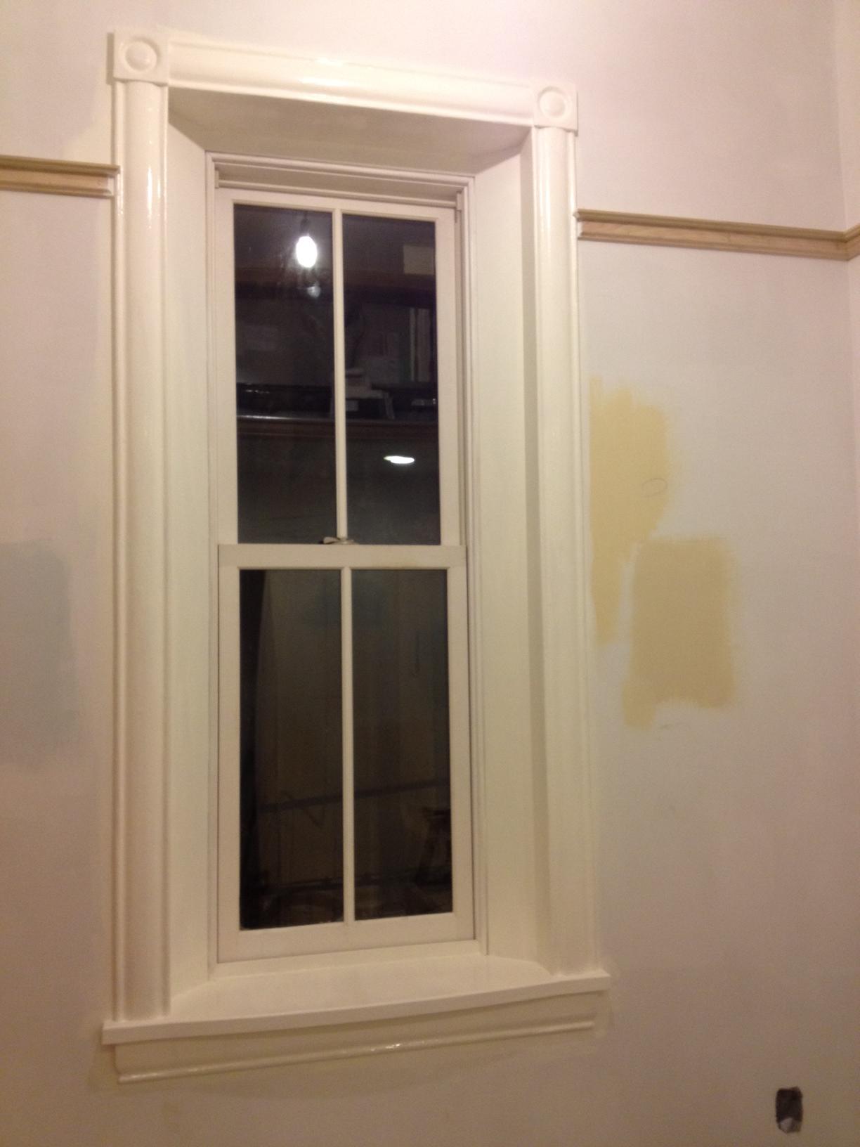 Really though, hall has two coats of trim paint so it’s go time tomorrow for the lower walls. We overpaint the trim onto the wall to fill any small gaps between wall and trim, and because we find it’s easier to cut-in to the door casing with the wall color than the other way around.