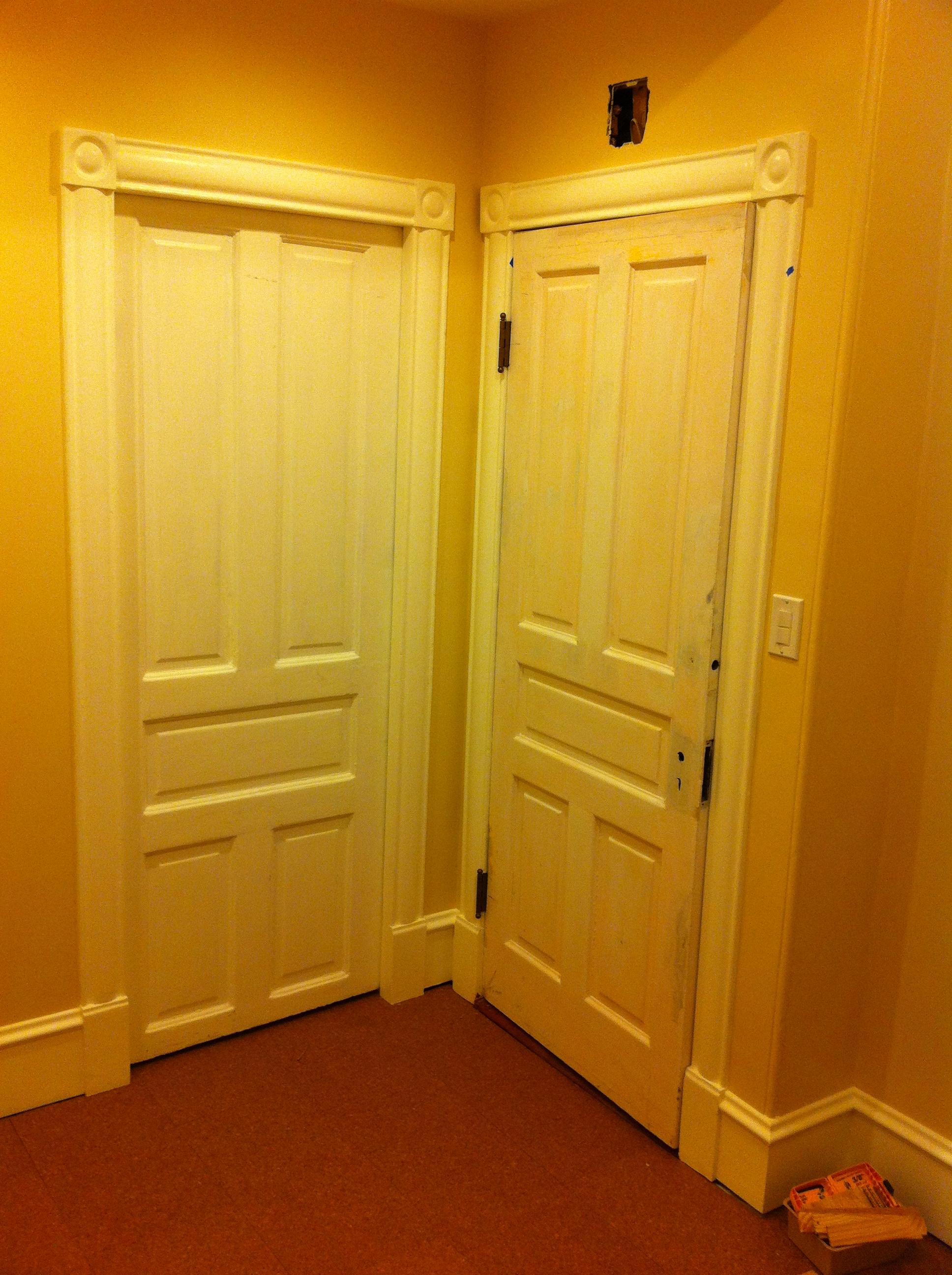 We’re hanging doors left and right and tonight the bedroom door went up- on the right: