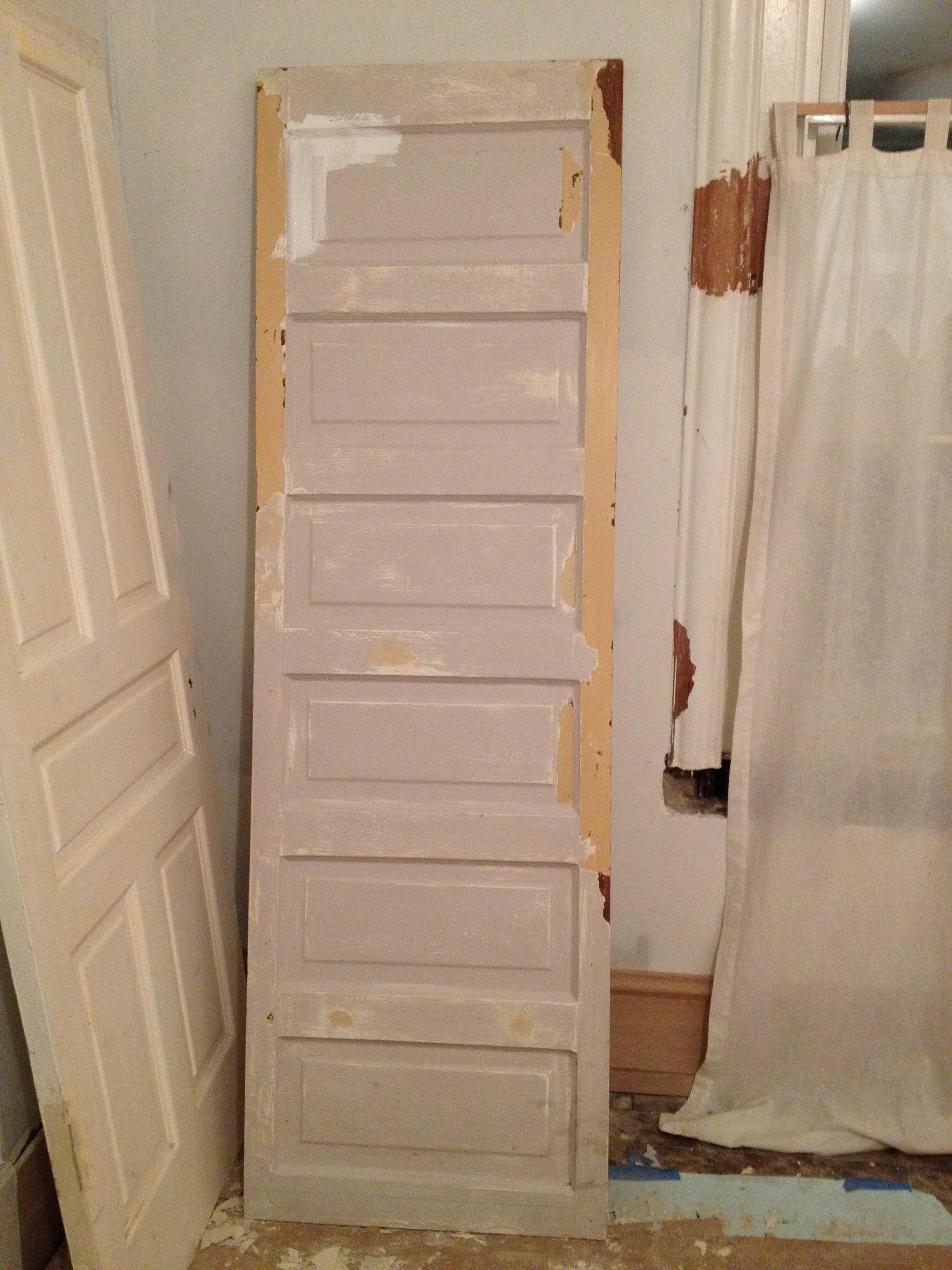 Side project- prepping the mechanical soffit panel (aka an old door); it needed primed so we can hang that guy too. Pre-prime: