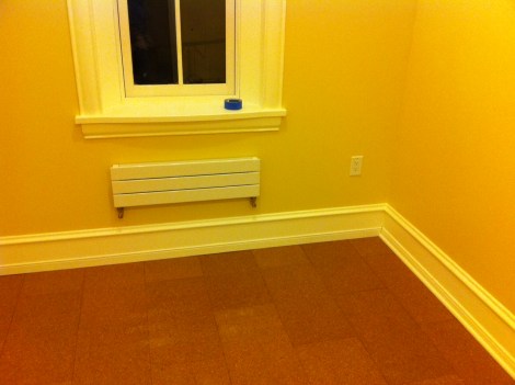 Rob installed the base in closet; bottom third of base (shoe) in room: