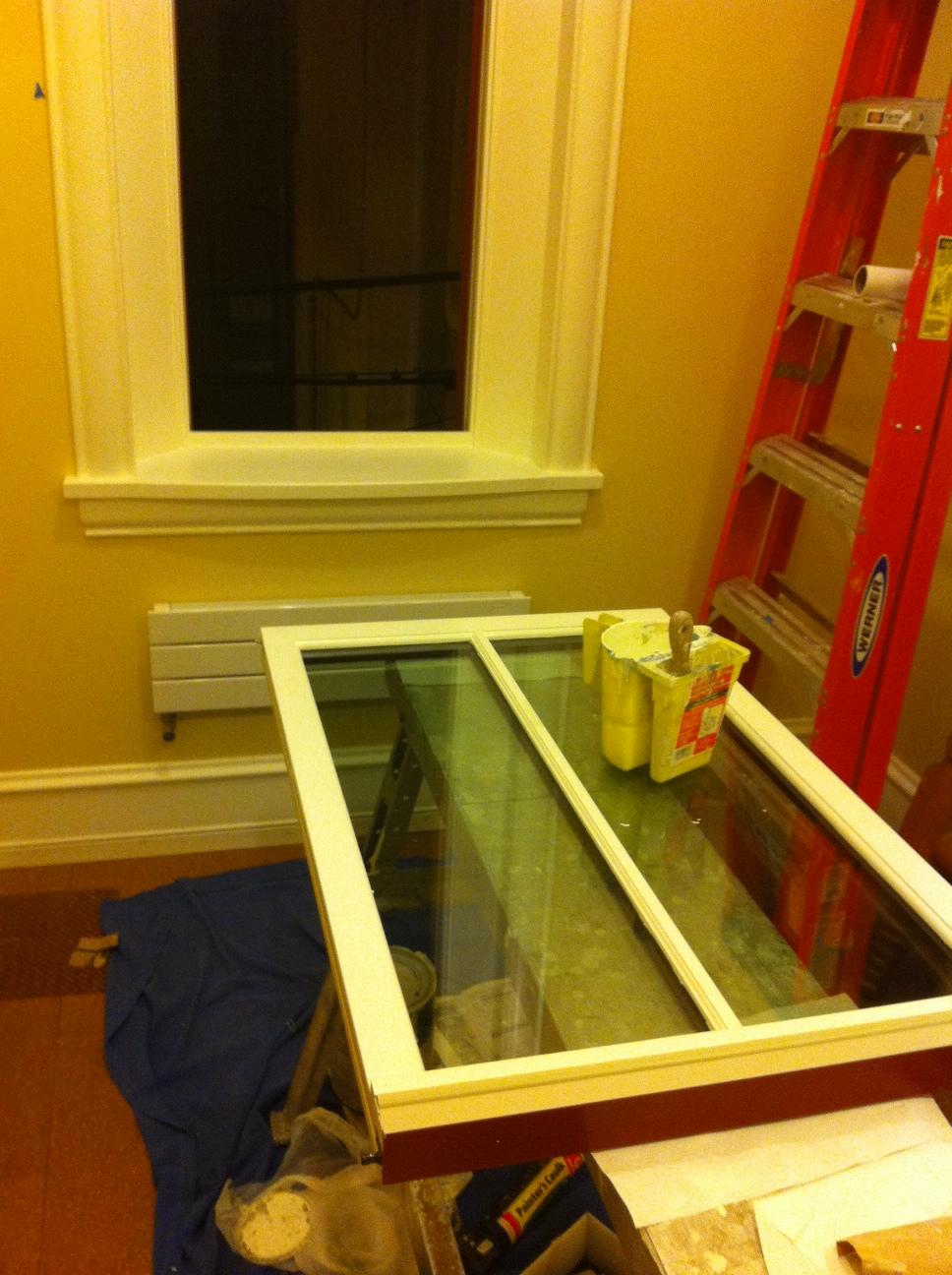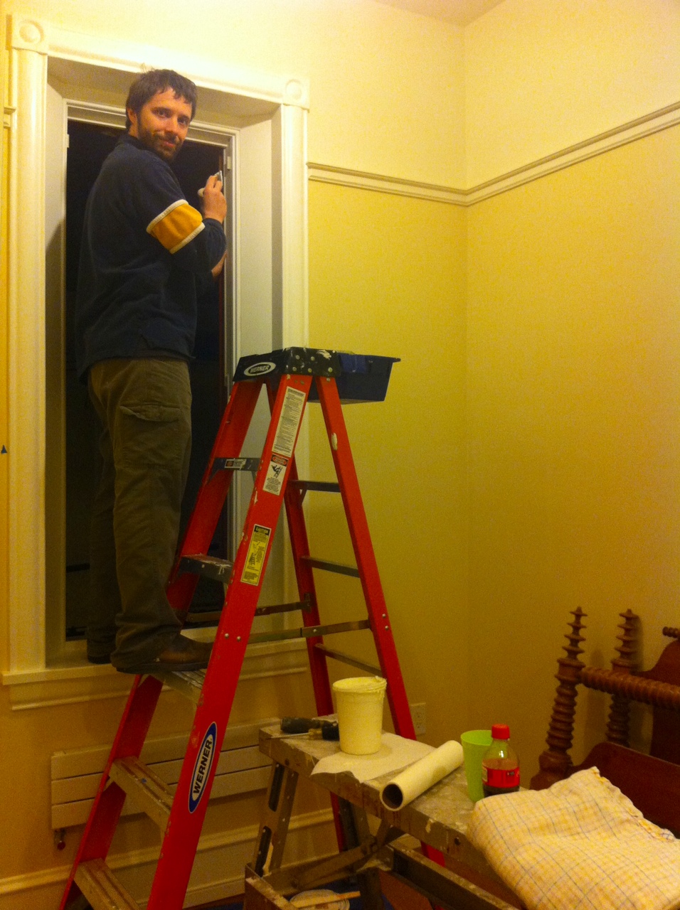 Rob took on the little bedroom window – I had painted the trim weeks ago but it had been too cold to paint the window:
