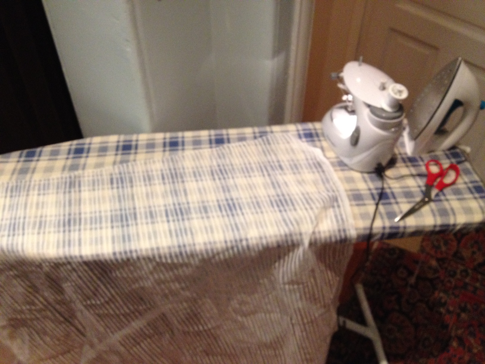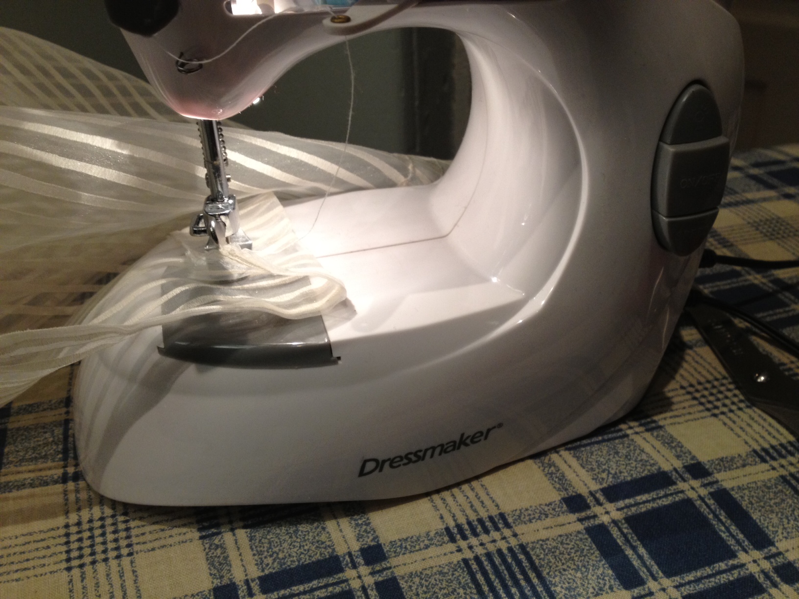 Then I used the mini sewing machine I bought almost 10 years ago for $20… Even has a mini foot pedal and light: