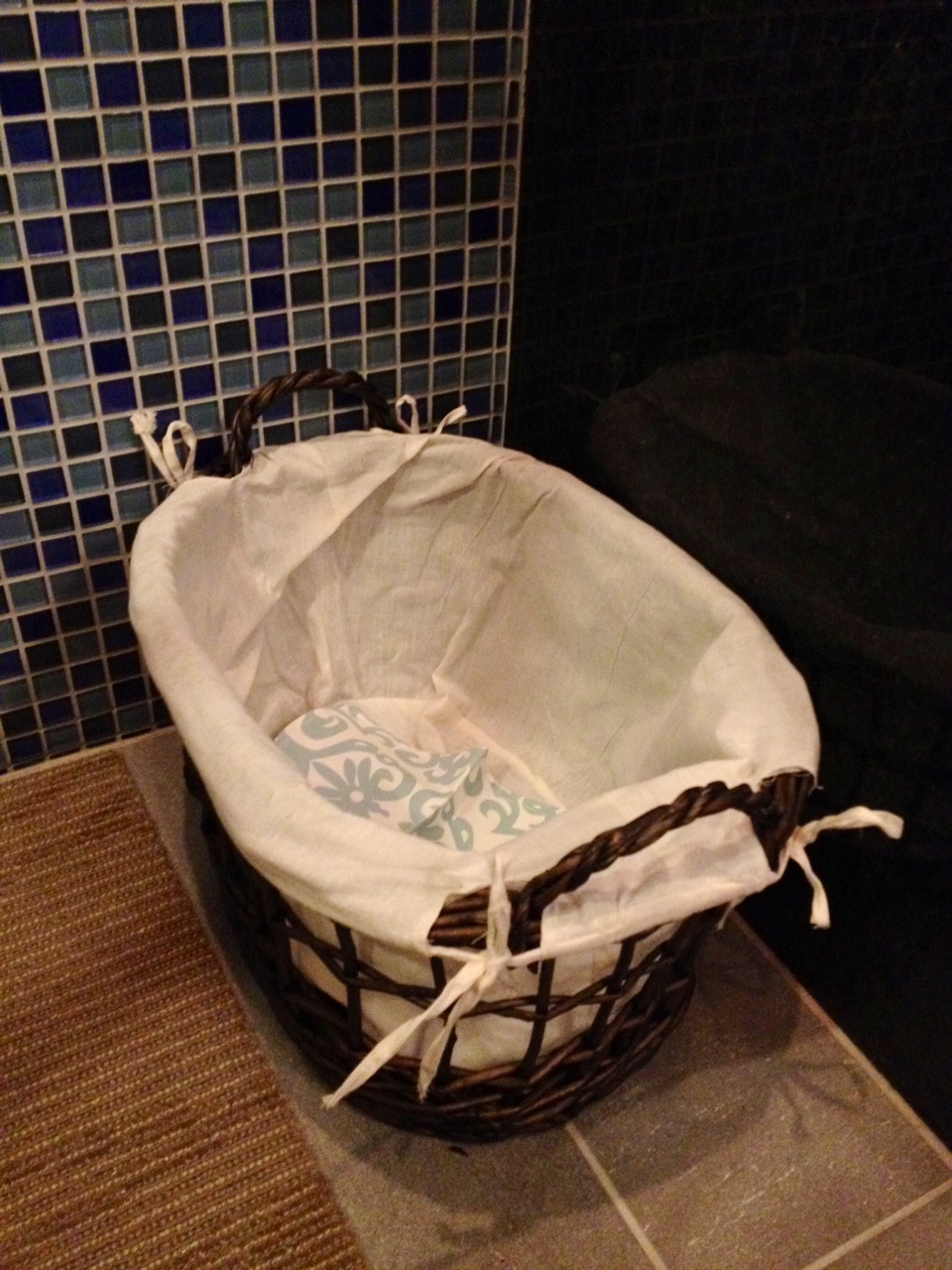 Kept in a corner of the kitchen, and can easily be whisked downstairs to the laundry or out of sight if any discerning guests stop by (: