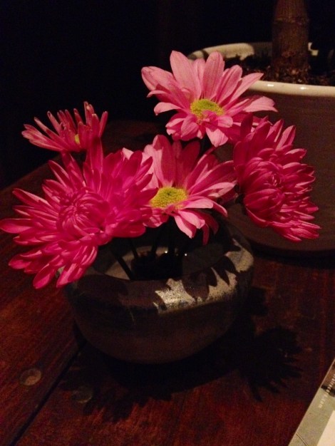 Really can’t beat hot pink flowers; brought them home Friday from an Eastern Shore luncheon for a completed project at work. They look great in our bud vase: