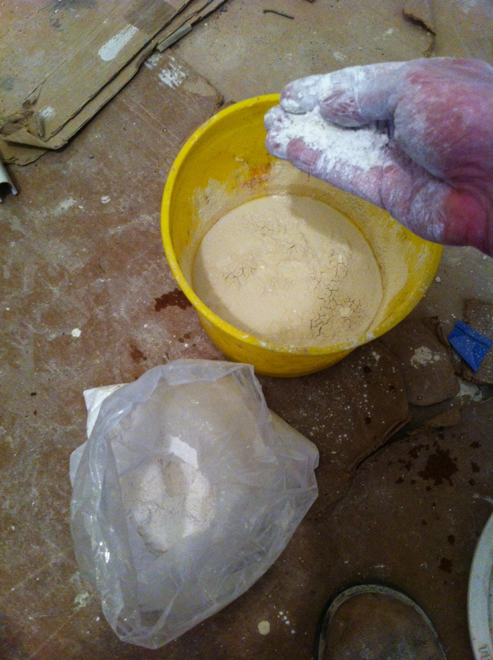 For the mold we used hydrocal plaster because it sets up fast, is harder than plaster of paris, and I had some leftover in the basement from when I used to do sculpture (back when we had time for such things).