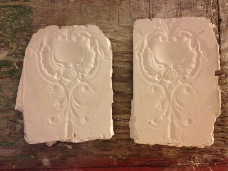 And now we have a negative mold of shells! The plaster picks up all the details exactly as they are in the old Victorian tiles.