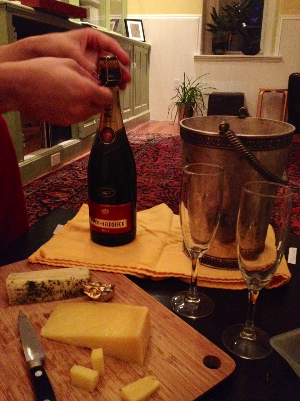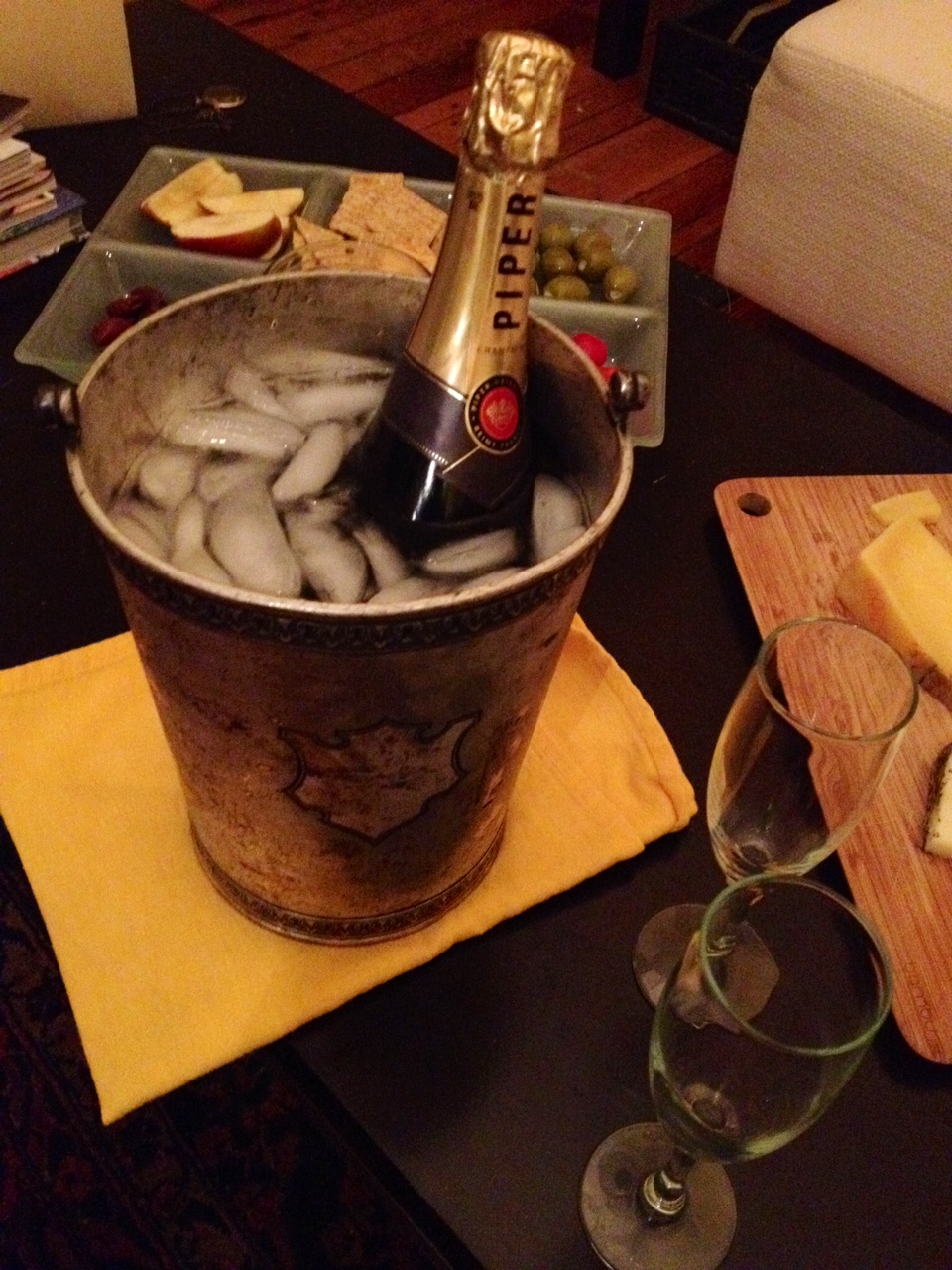 A month or so ago I happened across a silverplate champagne bucket, from around the time our house was built in the late 1800’s, listed on eBay. I was immediately drawn to the crest and other intricacies, so I did some research and checked prices on brand new buckets (with considerable less charm) and finally decided it was The One. I won’t get into all the heart pounding details (never having bid before, I had no idea how crazy it gets on eBay!) but needless to say, I had the winning bid: