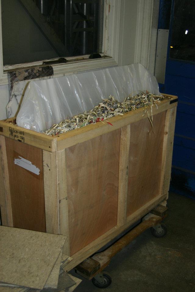 The glass arrived! Here’s the amazing crate job, not leaving anything to chance when it comes to transporting glass: