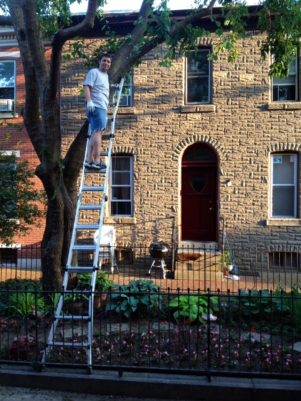 Luckily Rob likes ladders! We picked out a metal bird feeder this weekend for our garden, to hang from our tree: