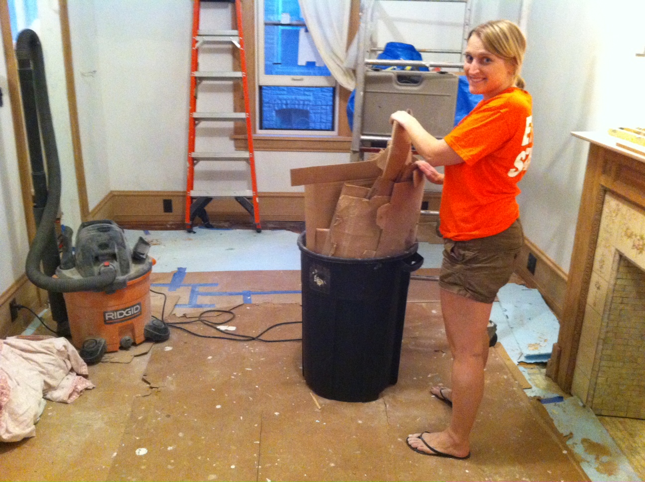 While I waited for the poly to dry I started taking up all the cardboard floor in the living room.