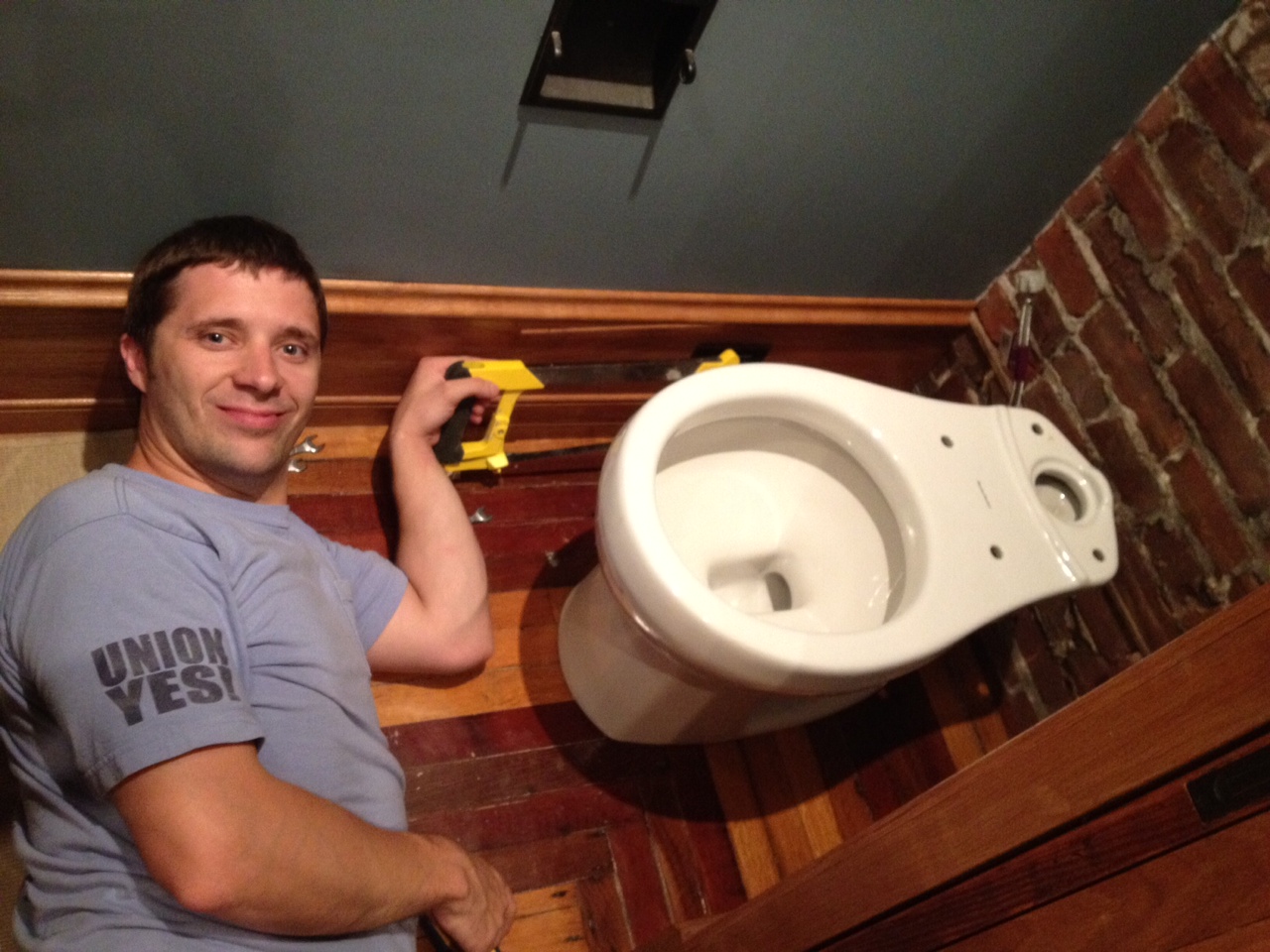 In preparation for our final inspection we had lots of odds & ends to finish… Such as installing the toilet in the half bath.
