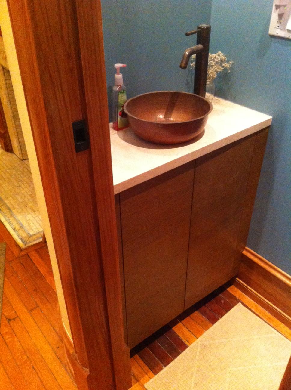 The sink also got their cabinet doors, though we still need to order the pulls which will double as a towel rack.