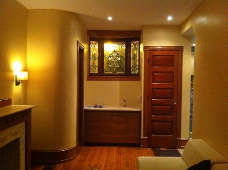 And all done. It’s really a wonderful room to spend time in day or night, and a complete transformation. At night the window is illuminated by our porch sconces & the alley street light.