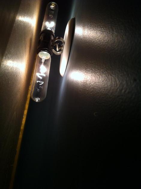 For the light we modified a socket from an old ceiling fixture and mounted it to a new back plate.
