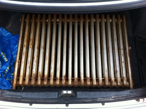 Riding home in our trunk. He’s a little surface rusty, but functionally should be fine. He will live within an enclosure so aesthetics aren’t a concern either: