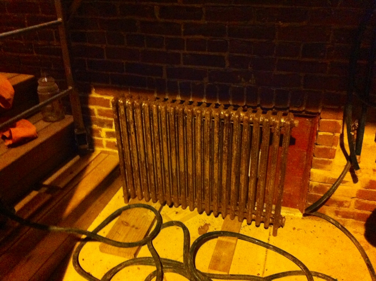 On our last Poconos visit we made a pit stop to Olde Good Things in Scranton, to see if they had any skinny cast iron radiators for the dining room project. The current dining room radiator is very deep and easily eats up at least one extra seat at our table. After exploring the always-interesting yard, we found this guy, well within the price we wanted to pay. Perfecto: