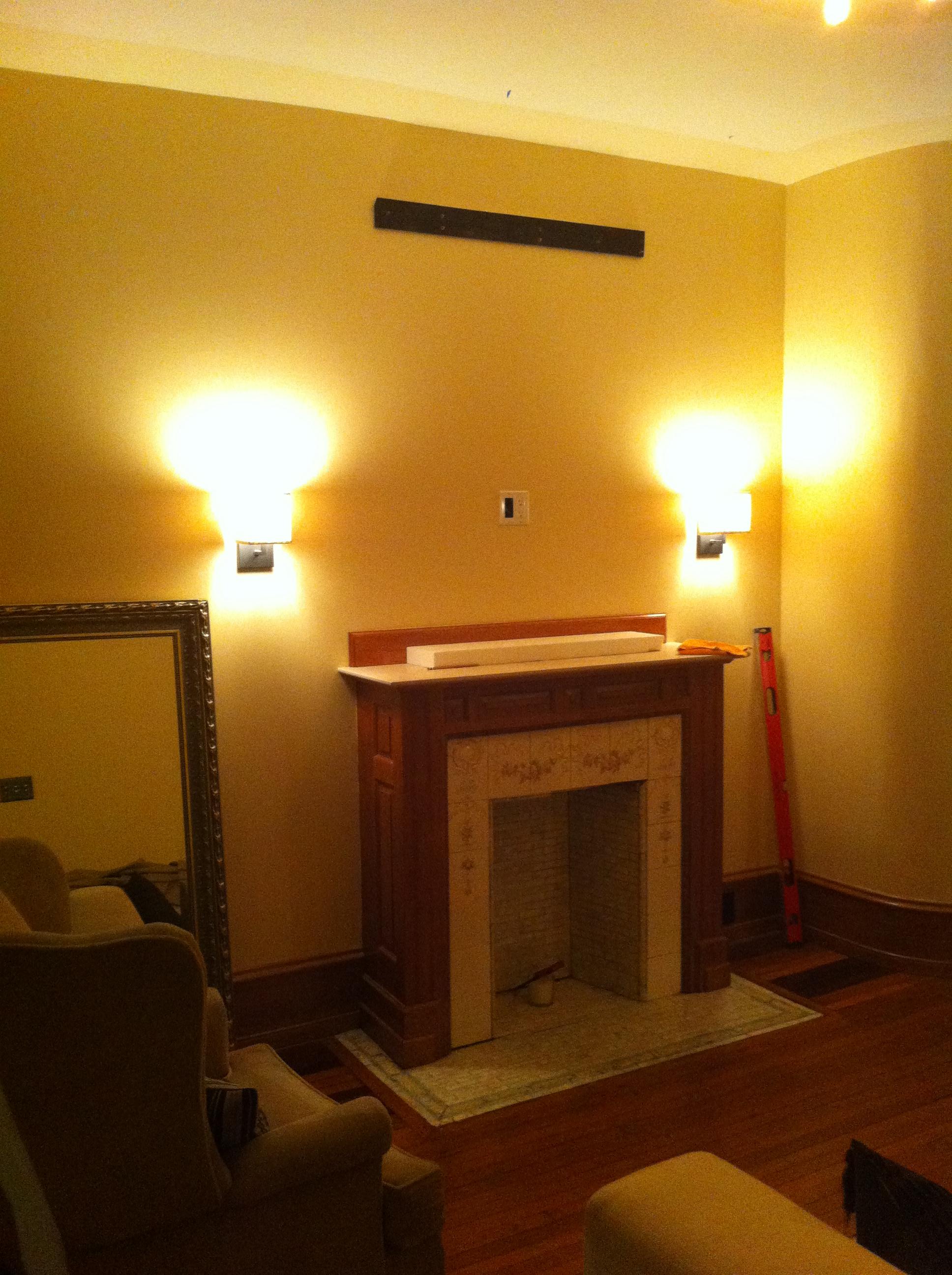 As a bonus the chosen fixture includes “egg & dart” details that match some of the fireplace trim.
