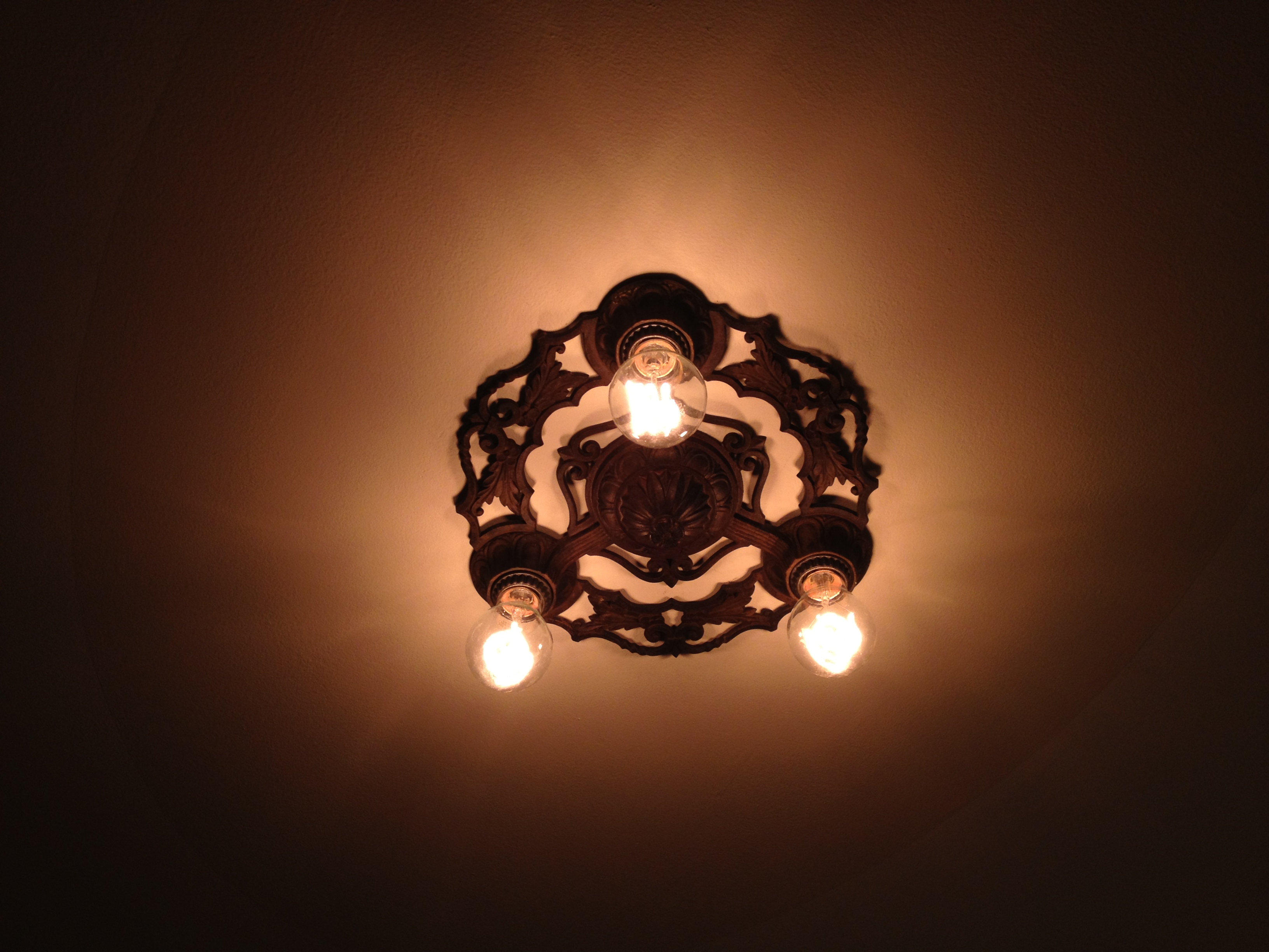 Our rewired, eBay special, antique Victorian light is installed inside the painted ellipse!