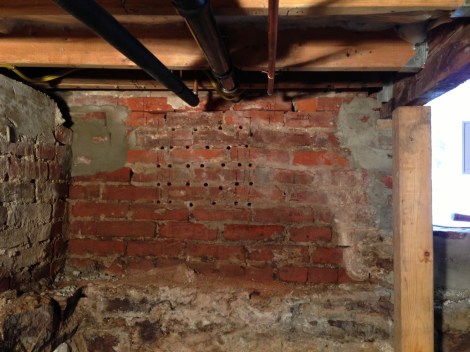 I’ll be happy when I am done with this project, it’s tight working quarters in the corner of the basement. Just room for me and the hammer drill.