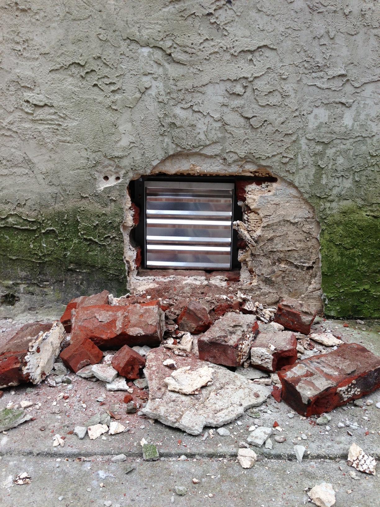 This helped to take the bricks out with minimal disturbance to the adjacent wall and to mark out the hole all the way through to the outside.