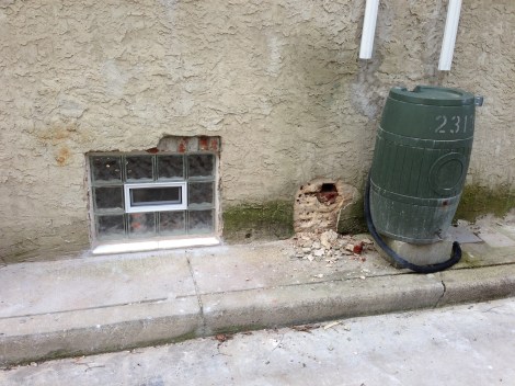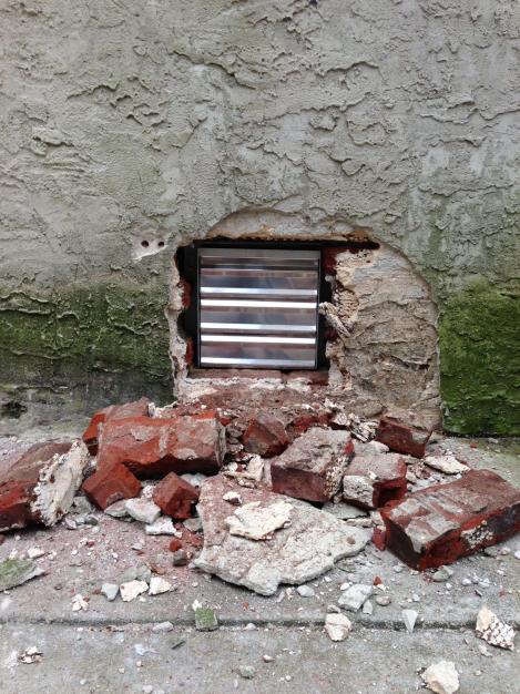 Well we have a hole & most importantly the louver fits! Next up stucco patching.
