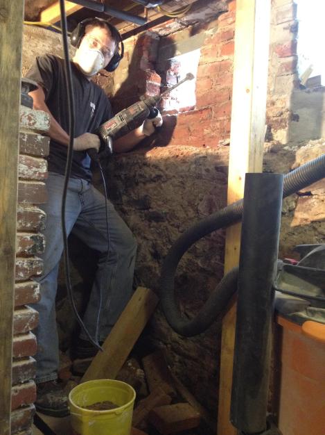 Time to make a hole in the exterior wall for our kitchen exhaust!