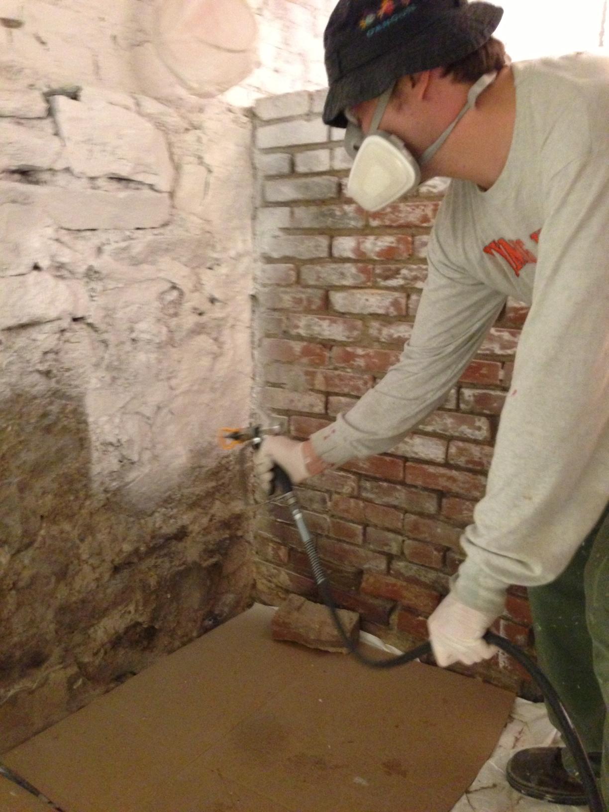 So finally I broke down and got a new professional type airless high pressure pumped sprayer. It is a Ryobi, so at least I didn’t spend as much as I could have, but totally worth the money. To paint the ceiling, the brick, and all the stone a sprayer was a must, and the airless pump sprayer it is super quick and did not clog once. My only regret is I wasted two hours trying to get cheap one to work right.